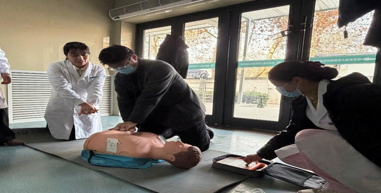 随后,校医院党支部书记、副院长李文霞在开班仪式上强调,应急救护技能是筑牢校园安全防线的重要支撑,保卫人员、辅导员等教职工群体是应对校园突发状况的“关键施救者”。她特别指出,学校已完成三个校区AED设备的全面布设,为校园应急救护工作筑牢了坚实硬件根基。她表示,校医院将持续深耕急救知识普及与技能培训工作,希望全体参训学员认真钻研学习,切实提升守护师生生命健康的实战能力。校医院副院长成怡敏宣布培训正式开班。
