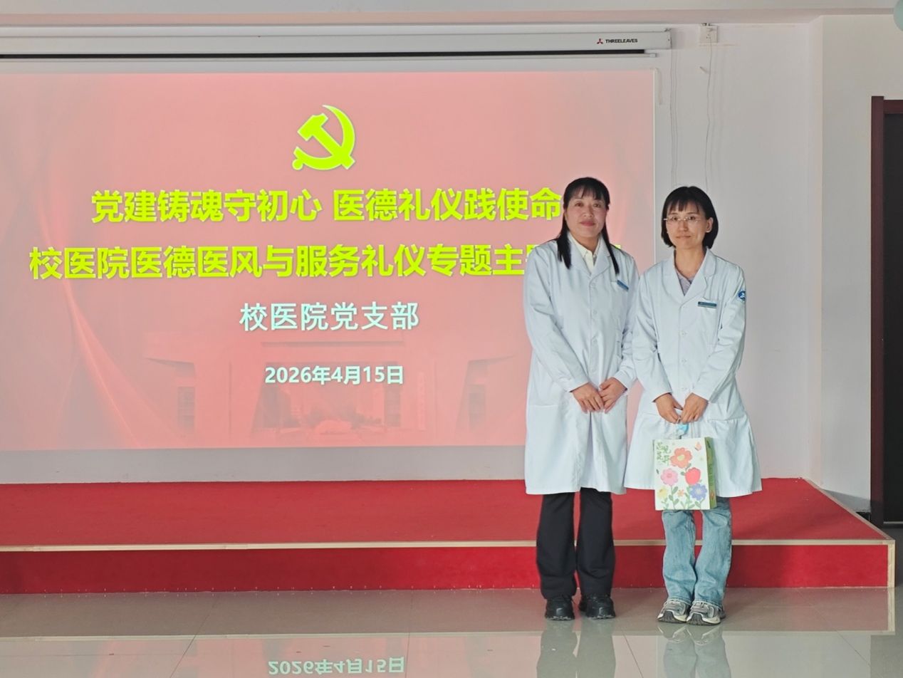 为深化党建与医疗业务深度融合,以党建引领医德医风建设,全面提升校园医疗服务质效,2026年4月15日,校医院党支部在鄠邑校区医务室三楼会议室,开展“党建铸魂守初心 医德礼仪践使命”专题主题党日活动,全体医务工作人员参加。